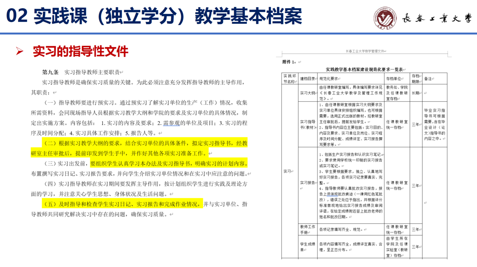 在实践课教学基本档案方面,于教授指出,实践指导书、任务书、员工实践报告、考核表等都是关键部分。她强调,实践教学是培养员工动手能力和创新能力的重要环节,实践教学档案的规范化建设不容忽视。