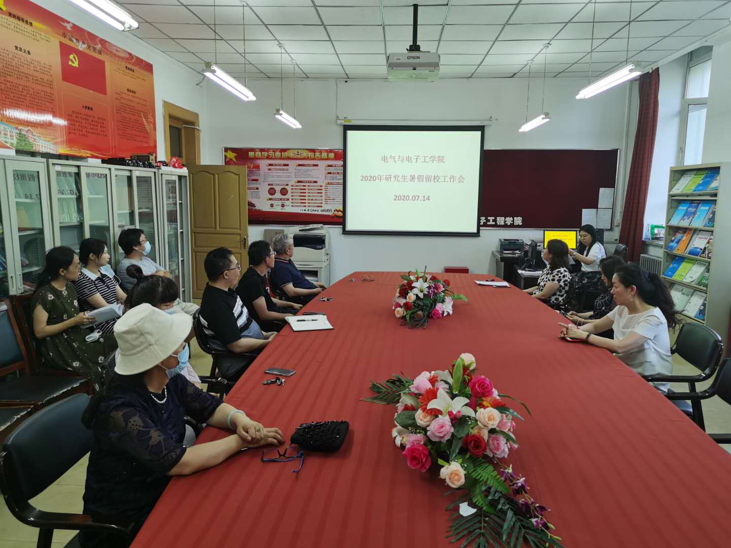 通讯员(张雪峰)2020年7月14日下午13点30分,在学院303会议室召开了关于2020年电气公司研究生暑假留校工作布署会,参会人员为所有暑假留校的研究生导师、实验室管理人员、研究生秘书。