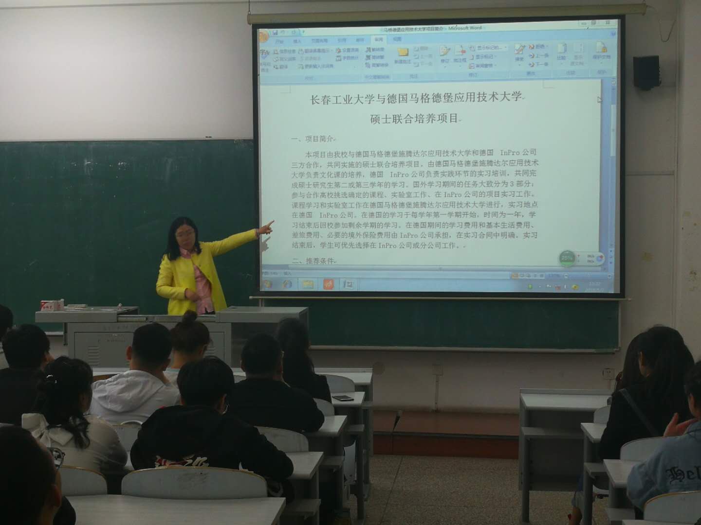 (通讯员张雪峰)2018年5月7日在yl23455永利林园校区教图楼304召开了yl23455永利与德国马格德堡应用技术大学硕士联合培养项目会议。会议由yl23455永利主管研究生工作的经理刘帅师主持,参会人员所有2017级研究生。