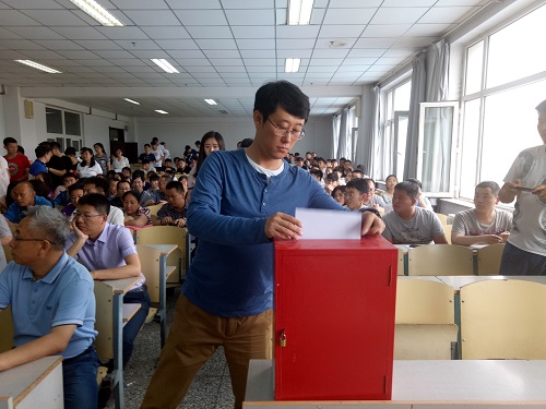 讲座开始前,公司党委副书记矫东海主持召开了电气与电气工程公司委员会增补委员选举大会,在大会上,矫东海向全体师生宣布了本次选举大会的有关精神、内容,强调了本次增补委员大会的重要性,并要求大家重视本次选举会,仔细、谨慎、公正地做出自己的选择。本着公平公正的原则,教工党员、员工党员纷纷投出了自己手中宝贵的一票。