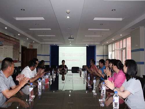 随后,公司党委书记王丽娜代表公司党委作出讲话,王丽娜对公司的办学情况、党建工作、员工就业发展等情况进行了详细的介绍,并对前进村党支部的发展建设工作表示了极大的赞同;王丽娜希望在未来前进村能与公司携手并肩,紧密合作,使双方的党建工作共上新的台阶。接下来双方签订了《校地共建协议》。