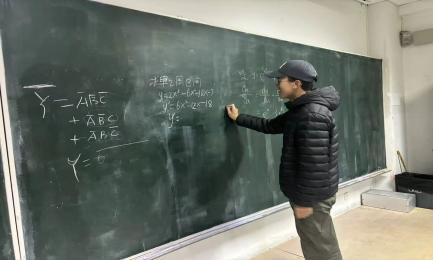 讲台上的员工自信满满,声音清脆。手中的笔在黑板上流畅滑动,思路清晰地讲解难题。他眼神专注,仿佛散发着智慧的光芒,同学们也听得格外认真,沉浸在知识的海洋中。