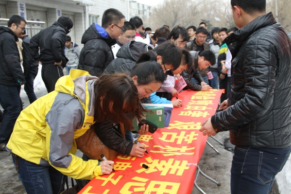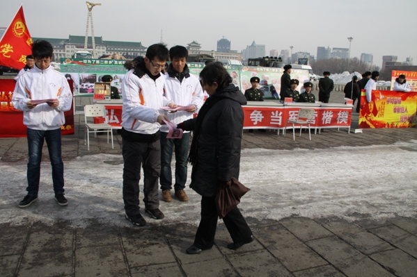 3月5日,公司老员工志愿者来到长春市文化广场,树起了“弘扬雷锋精神,倡导文明新风”的宣传海报,与吉林警备区的警务人员一起向路人宣传雷锋精神,并分发自制的雷锋精神宣传单。活动吸引了众多媒体的目光,吉林日报等几家媒体对老员工志愿者进行了采访。在接受访问时,同学表示学习雷锋精神是老员工应上的一堂课,宣传雷锋精神是老员工应尽的义务,同学们会在日常生活中多做好事、实事,尽己所能为需要帮助的人伸出援助之手。