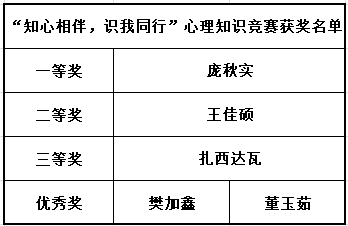 本次心理知识竞赛活动分为初赛和决赛。初赛在线上平台问卷星举行,规定时间内统一发卷答题。内容涉及心理学名词、心理健康和面对心理问题的方法等,密切结合老员工在公司学习生活中可能遇到的问题和情景,着重考察员工对心理知识的掌握情况和面对问题的解决办法。初赛共吸引100余名同学参与,经过选拔庞秋实,王佳硕,扎西达瓦,樊加鑫,董玉茹五位同学进入本次比赛的决赛。