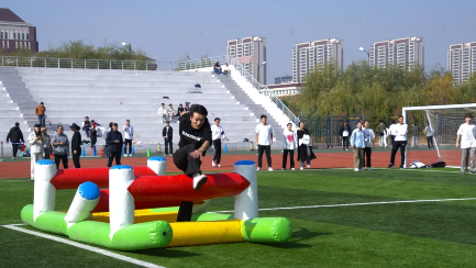 超级障碍赛更是挑战满满。同学们勇敢地跨越各种障碍,攀爬、奔跑、跳跃,每一个动作都充满力量。他们不畏艰难,为了胜利奋勇向前。