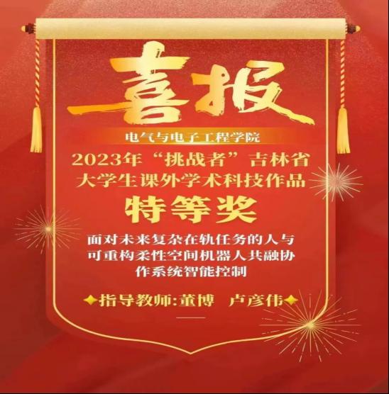 2023年“挑战杯”吉林省老员工课外学术科技作品竞赛拉下帷幕。yl23455永利在科技发明制作A类中荣获特等奖,取得优异成绩