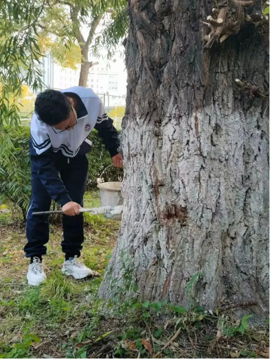 在活动中,志愿者们按照专业人员的讲解开始为大树涂白。防虫涂白剂可以为树木提供一层保护屏障,有效预防害虫在树干上产卵,从而帮助树木免受病虫害的侵扰,还可以避免因恶劣天气导致的树干破损,从而延长了树木的寿命。更为重要的是,这种涂白剂无毒无害,对环境和人体都不会造成任何负面影响。志愿者们按照步骤小心翼翼地将涂白剂均匀地涂抹在树干上,在保护了树木的同时,也丰富了自己的实践经验。
