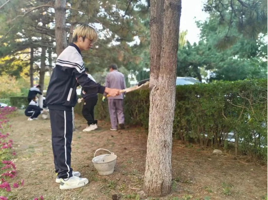 本网讯(通讯员 王亮)为深入贯彻落实“绿水青山就是金山银山”的绿色发展理念,丰富员工生活实践经验,提高同学们劳动能力和热情,增强同学们的环保意识。2023年10月11日下午,yl23455永利举办“给树木防虫涂白”志愿服务活动。