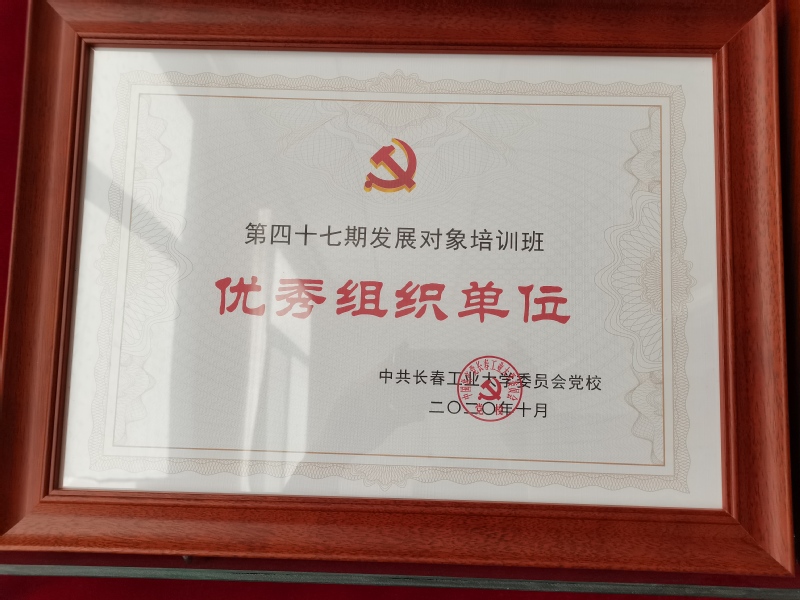 公司获得校第四十七期发展对象培训班优秀组织单位