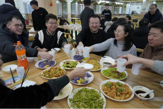 联欢会还安排了包饺子活动,现场提供了冷热荤素8个菜,大家一边品尝美食,一边交流感情,度过了一个温馨而美好的夜晚。